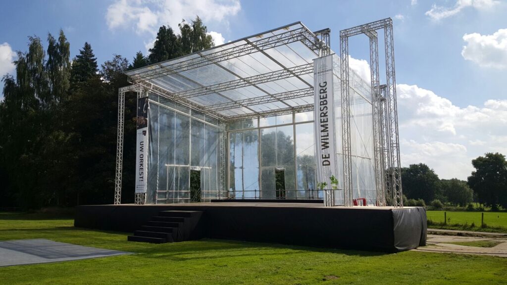 Het Flat Roof systeem is een eenzijdig hellende overkapping waarvan het dakgrid is opdebouwd uit 40×40 trussen die worden ondersteund door 4 30×30 masttrussen. Aan de achterzijde worden twee extra ondersteuningsmasten geplaatst, waardoor de Riggingcapaciteit in de achterzijde van het dak is verhoogt, voor bijvoorbeeld een LED scherm. Het Flat Roof systeem is leverbaar met zwarte of transparante zeilen. Daarnaast is het mogelijk om aan beide zijkanten een overdekte Sidestage en/of aan de achterzijde een overdekte backstage area aan te bouwen.
